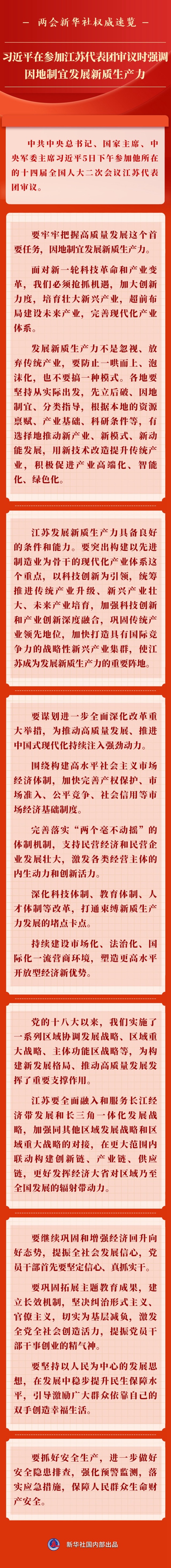 兩會新華社權(quán)威速覽丨習(xí)近平在參加江蘇代表團(tuán)審議時強(qiáng)調(diào) 因地制宜發(fā)展新質(zhì)生產(chǎn)力