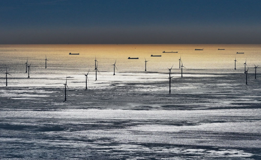 這是2023年12月22日拍攝的河北省唐山市海港經(jīng)濟(jì)開發(fā)區(qū)轄區(qū)內(nèi)的海上風(fēng)電場(無人機(jī)照片)。