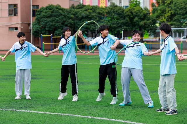 2023年6月12日,湖北省襄陽市諸葛亮中學(xué)教育集團組織九年級學(xué)生開展“快樂減壓 笑迎中考”考前系列減壓活動,緩解考前學(xué)生緊張焦慮情緒。通訊員 付曉方 攝