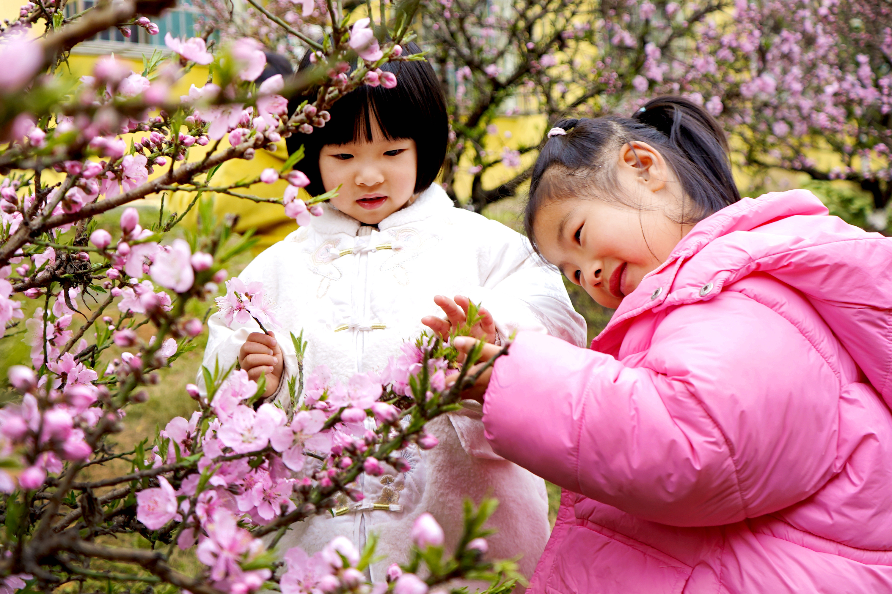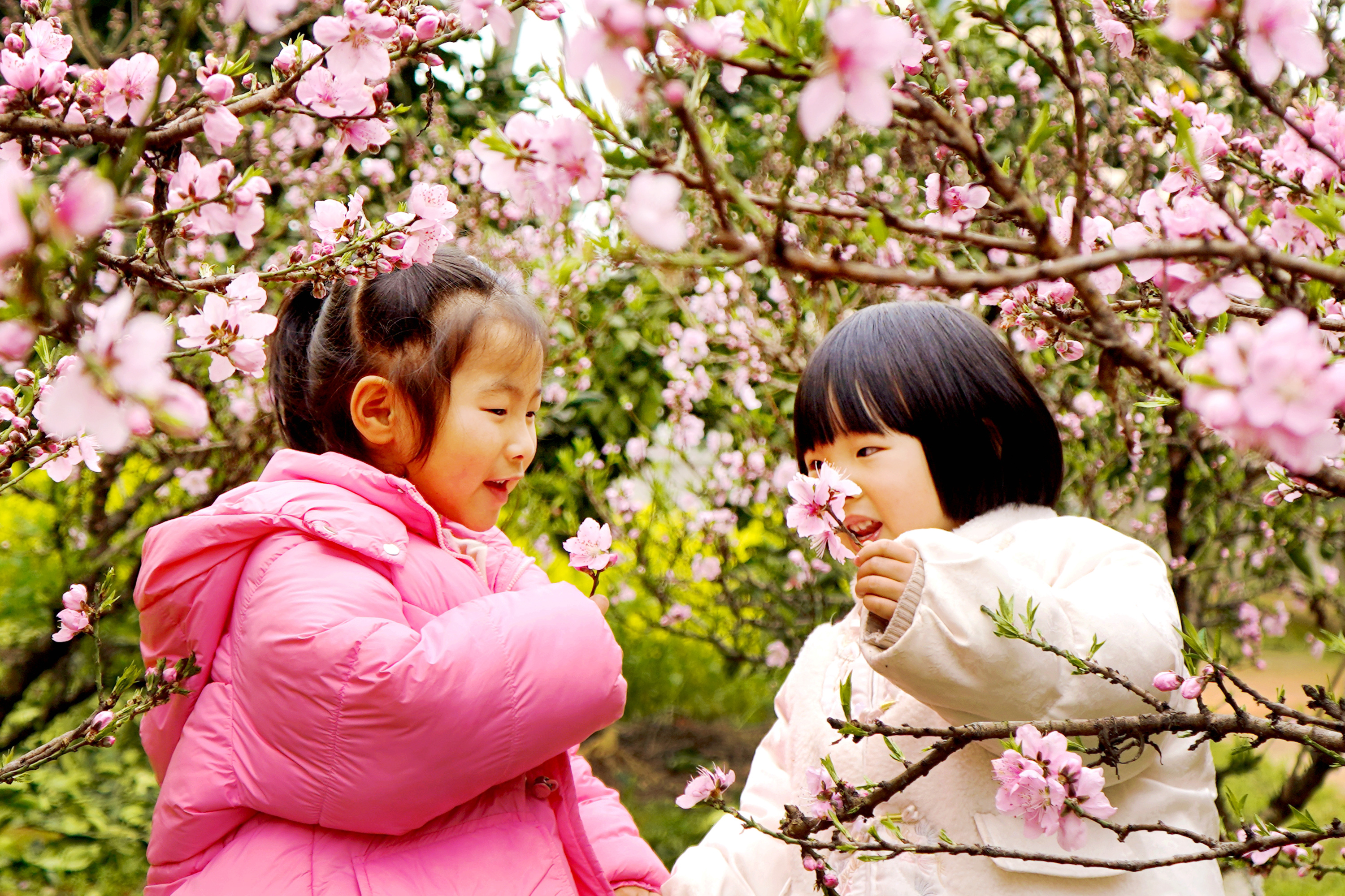 孩子們?cè)谟^賞桃花。通訊員 陳旗海 攝
