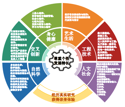 在做強(qiáng)、做優(yōu)學(xué)科課程群、保障學(xué)科核心素養(yǎng)落地的同時(shí),依托多年累積形成的豐富的活動(dòng)資源,著眼課程育人的綜合性和實(shí)踐性,人大附中積極探索不同樣態(tài)、各有特色的跨學(xué)科課程群,以學(xué)生特定的素養(yǎng)結(jié)構(gòu)為目標(biāo),以發(fā)展理念為統(tǒng)領(lǐng),以跨學(xué)科主題為線索,對(duì)性質(zhì)相近或者關(guān)聯(lián)的課程進(jìn)行整合、優(yōu)化、重組,從而充分體現(xiàn)課程的整體育人價(jià)值,形成結(jié)構(gòu)清晰、內(nèi)在一致、彼此銜接的課程組群。學(xué)校跨學(xué)科課程群包括作為國(guó)家課程的綜合實(shí)踐活動(dòng)課程與勞動(dòng)課程的校本化實(shí)施、服務(wù)國(guó)家發(fā)展戰(zhàn)略的人工智能課程群,以及滿足學(xué)生個(gè)性化發(fā)展需求的特色跨學(xué)科課程(群)系列。