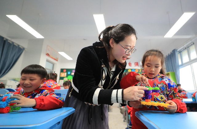 3月26日,課后延時(shí)服務(wù)時(shí)間,徐州市大學(xué)路實(shí)驗(yàn)學(xué)校陶藝社團(tuán)的糖果老師指導(dǎo)學(xué)生完成陶藝作品。