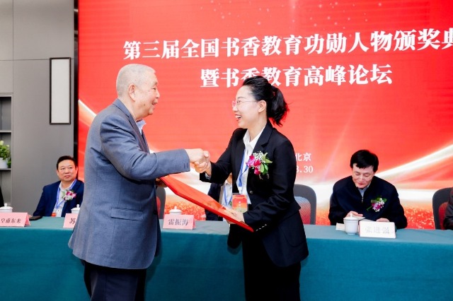 中國(guó)教育報(bào)-中國(guó)教育新聞網(wǎng)訊(記者 張貴勇)3月30日,第三屆全國(guó)書(shū)香教育功勛人物頒獎(jiǎng)典禮暨書(shū)香教育高峰論壇在北京師范大學(xué)舉行?!叭珖?guó)書(shū)香教育十佳”“全國(guó)書(shū)香教育百佳”“全國(guó)書(shū)香教育優(yōu)秀獎(jiǎng)”“全國(guó)書(shū)香教育卓越貢獻(xiàn)獎(jiǎng)”“書(shū)香中國(guó)·全民閱讀示范縣”等獎(jiǎng)項(xiàng)獲獎(jiǎng)代表受頒獎(jiǎng)狀和牌匾。