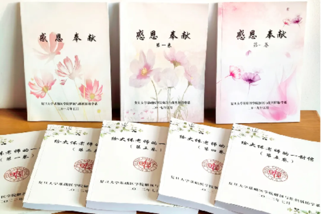 “我給他弟弟發(fā)了短信,說明了我的來意,沒過一會兒,電話就打來了。”周國民回憶道,“他打電話過來時非常激動,沒想到他哥哥去世了這么多年,還有人惦念并一直想要感謝他的家人?!?/span>經(jīng)過周國民的聯(lián)系,2019年末,吳復生的家人們來到了上海遺體捐獻者紀念園和人體科學館,“看到吳復生的照片和遺體捐獻志愿書,大家都流淚了?!?/p> 吳復生曾是知青,恢復高考后,他勤奮努力考上了安徽的大學。讀了兩年大學后,吳復生又參加了研究生考試,因成績優(yōu)異被上海中科院生物化學研究所破格錄取。非常不幸的是,就在他即將進行畢業(yè)答辯之際,被確診患了白血病,雖經(jīng)積極醫(yī)治,但他的病情已無力回天。在彌留之際,面對陪伴在身邊的父母和弟妹,他回憶過往種種,遺憾自己學習多年,卻未能走上工作崗位來回報社會,因此決定捐獻遺體。病逝后的遺體捐獻,也是他給國家和人民力所能及的全部貢獻。 不只是吳復生,在復旦大學上海醫(yī)學院,每一位“大體老師”的奉獻都被尊敬,被銘記,被感念。2016年清明節(jié),解剖學系為本系捐獻遺體的教職工及其親屬塑了像?,F(xiàn)在,塑像仍掛在人體科學館門口接受著參觀來訪者的致敬。 每一名復旦大學上海醫(yī)學院學子的第一堂局部解剖課,都是一堂生動而肅穆的“大思政課”。全體師生起立鞠躬,默哀致意,在為“大體老師”獻上一枝枝花后,方可開始課程教學,幾十年來,皆是如此。 來自師生的諸多感恩致意中,最特別的要數(shù)《致“大體老師”的一封信》。自2016年起,所有修讀解剖學系列課程的學生都會在結(jié)課前完成這份手寫信。手寫信件、原創(chuàng)詩歌、書法作品,甚至學生自己吹奏的一支不甚熟練卻很動人的《春泥頌》,都被李文生老師仔細收錄起來,編纂成十幾本《感恩·奉獻》集,保存著數(shù)千名醫(yī)學生對“大體老師”的無限緬懷與敬意。 醫(yī)學生們從“大體老師”身上獲取的不僅是知識,更重要的是學醫(yī)所肩負的使命感和責任感。《感恩·奉獻》集每一本都有幾百頁,不同的字跡表達的都是對“大體老師”的真誠致敬:“雖然與您不曾相識,但您的無私奉獻給予了我們學習的機會,我們無法感同身受您生前的病苦,但絕不辜負您身后的選擇,謝謝您,我的老師!”(中國教育報-中國教育新聞網(wǎng) 記者 任朝霞 通訊員 李蔚怡 孫芯蕓) 復旦大學上海醫(yī)學院編撰的《感恩·奉獻》集 學校供圖