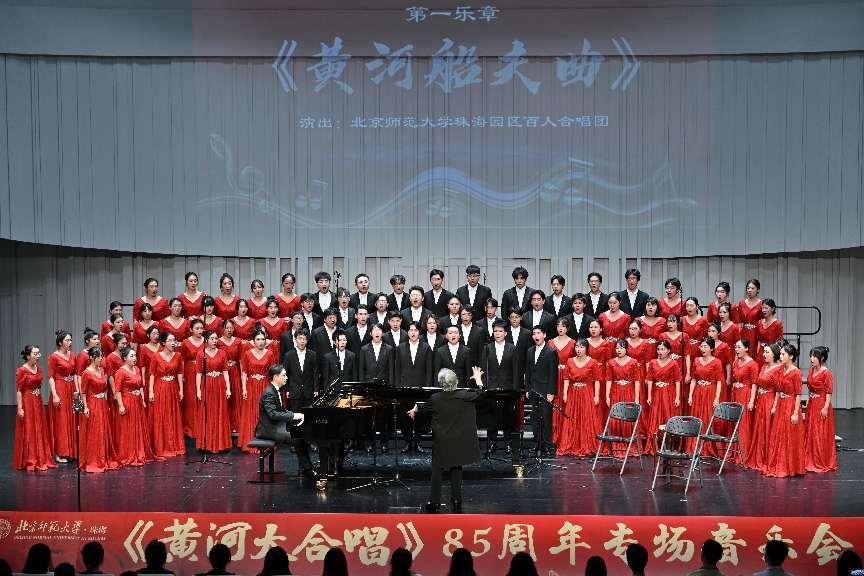 4月12日晚,北師大珠海園區(qū)在珠海大劇院隆重舉辦紀(jì)念《黃河大合唱》首演85周年專場音樂會(huì)。國際著名合唱指揮家、中國國家大劇院合唱團(tuán)首席指揮吳靈芬擔(dān)任藝術(shù)總監(jiān)與合唱指揮,中國歌劇舞劇院原院長和原藝術(shù)總監(jiān)李小祥,河南省民族管弦樂協(xié)會(huì)理事、珠海市香洲區(qū)秦派三弦非遺傳承人王學(xué)輝,以及北師大藝術(shù)與傳媒學(xué)院若干音樂專家、珠海市青少年合唱團(tuán)等傾情參演,展現(xiàn)了歌唱藝術(shù)的獨(dú)特魅力,充分傳遞了《黃河大合唱》組曲的精神力量。觀演的青年學(xué)生們紛紛表示將厚植家國情懷,在中國式現(xiàn)代化建設(shè)征程中團(tuán)結(jié)一心、挺膺擔(dān)當(dāng)。