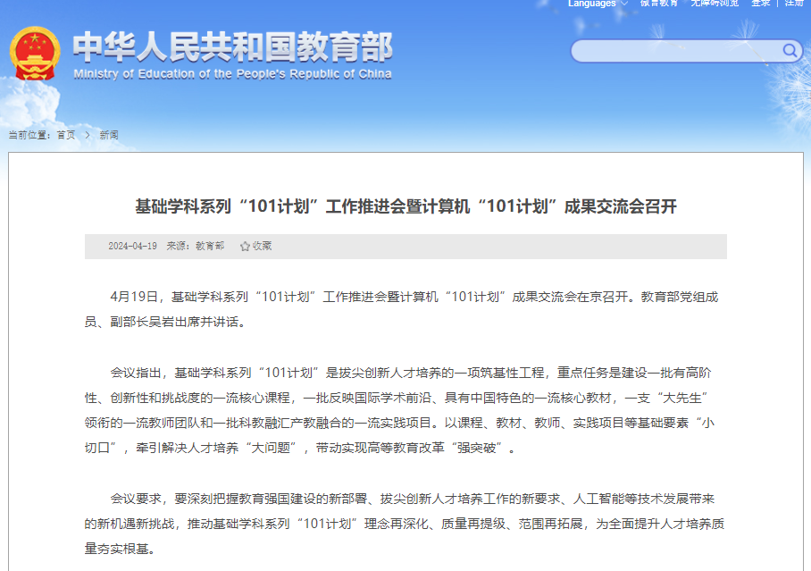 會(huì)議要求,要深刻把握教育強(qiáng)國(guó)建設(shè)的新部署、拔尖創(chuàng)新人才培養(yǎng)工作的新要求、人工智能等技術(shù)發(fā)展帶來(lái)的新機(jī)遇新挑戰(zhàn),推動(dòng)基礎(chǔ)學(xué)科系列“101計(jì)劃”理念再深化、質(zhì)量再提級(jí)、范圍再拓展,為全面提升人才培養(yǎng)質(zhì)量夯實(shí)根基。
