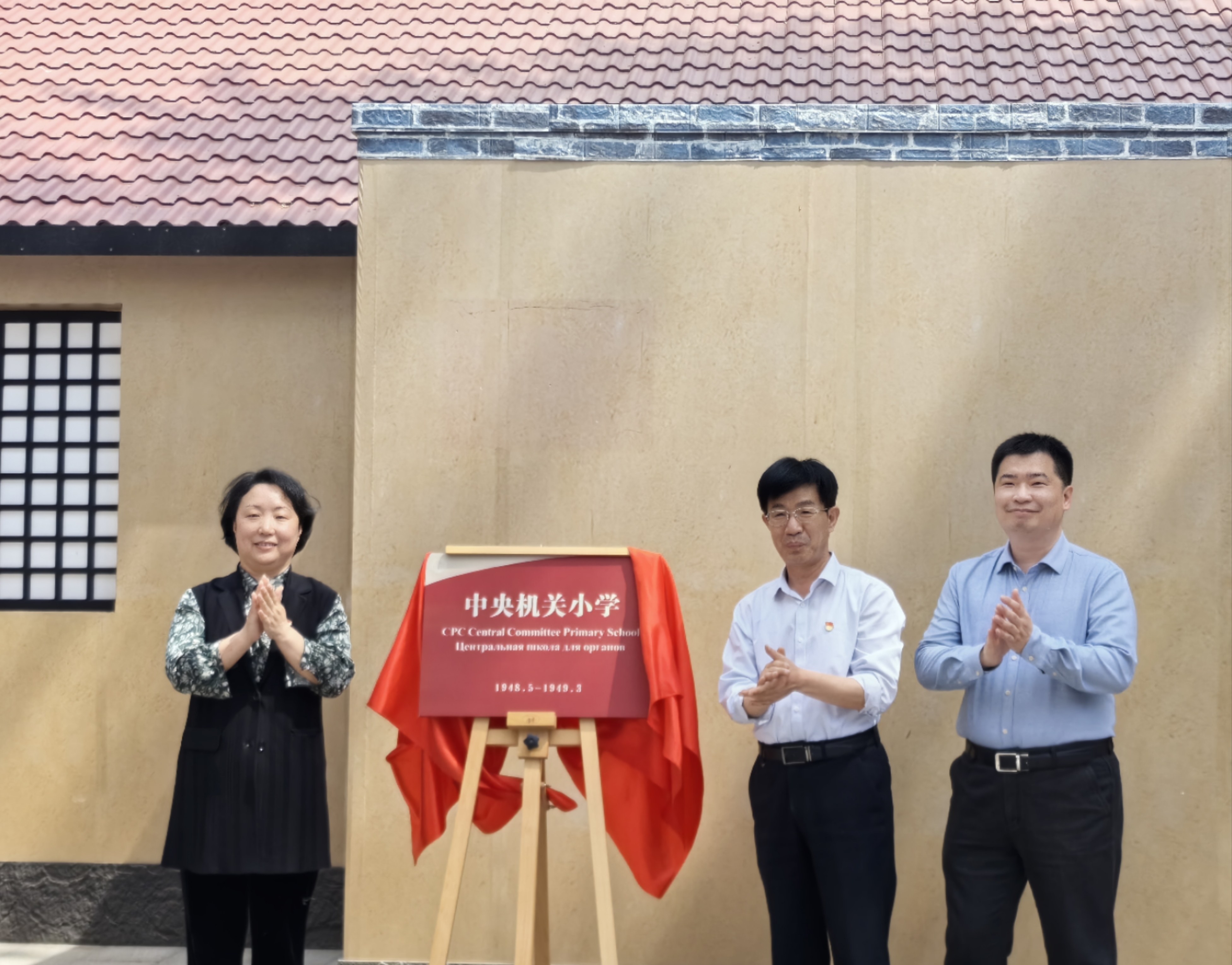 4月,育英學(xué)校在校史廣場上仿建了在西柏坡時(shí)的舊址。當(dāng)天,西柏坡紀(jì)念館黨委書記盧潤彩、海淀區(qū)教委宣傳科科長章軍、育英學(xué)校黨委書記于會(huì)祥為復(fù)建的“中央機(jī)關(guān)小學(xué)”揭牌。