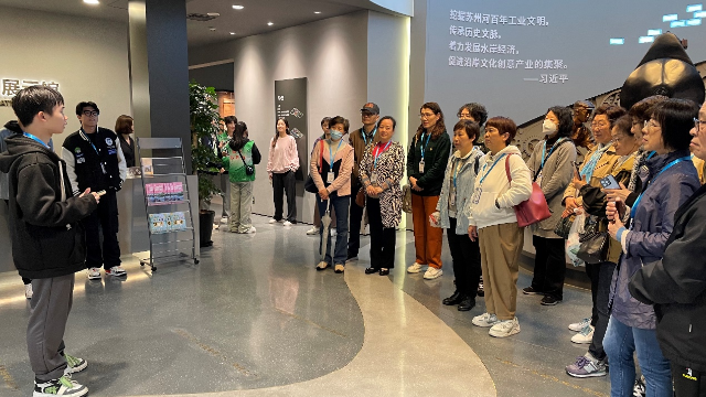 靜安區(qū)老年大學(xué)學(xué)員聆聽(tīng)蘇州河工業(yè)發(fā)展與環(huán)境變遷的講解,并作互動(dòng)交流