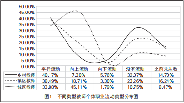 促進(jìn)鄉(xiāng)村教師隊(duì)伍交流輪崗式流動(dòng)刻不容緩。調(diào)研中發(fā)現(xiàn),不少縣域內(nèi)義務(wù)教育教師輪崗制度取得新突破,多年來(lái)困擾城鄉(xiāng)教師合理有序雙向流動(dòng)的體制機(jī)制性障礙漸次破解,實(shí)質(zhì)性激發(fā)了從教活力。但囿于現(xiàn)有崗位設(shè)置和職稱評(píng)聘等綜合因素影響,鄉(xiāng)村教師的流動(dòng)性依然低于城區(qū)和鎮(zhèn)區(qū)教師。受調(diào)學(xué)校中有近三成鄉(xiāng)村教師沒(méi)有發(fā)生職業(yè)流動(dòng)(占32.07%),高于鎮(zhèn)區(qū)教師和城區(qū)教師23.26%和10.75%的未流動(dòng)率。在發(fā)生職業(yè)流動(dòng)的教師群體中,鄉(xiāng)村教師以平行流動(dòng)為主(占40.17%),高于鎮(zhèn)區(qū)教師(占38.49%)和城區(qū)教師(占33.88%)??梢?jiàn),在做好城鎮(zhèn)學(xué)校教師到鄉(xiāng)村學(xué)校交流輪崗的基礎(chǔ)上,要進(jìn)一步通過(guò)強(qiáng)制性和激勵(lì)性制度雙管齊下深化改革,以激發(fā)鄉(xiāng)村學(xué)校教師到鎮(zhèn)區(qū)和城區(qū)學(xué)校任教。(見(jiàn)圖1)