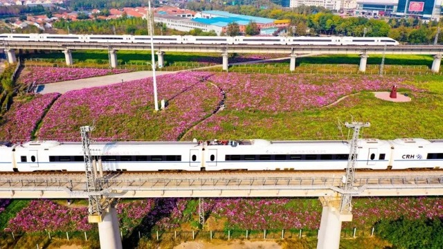 航拍的日照市東港區(qū)碳匯花海(無人機(jī)照片)。新華社記者 郭緒雷 攝