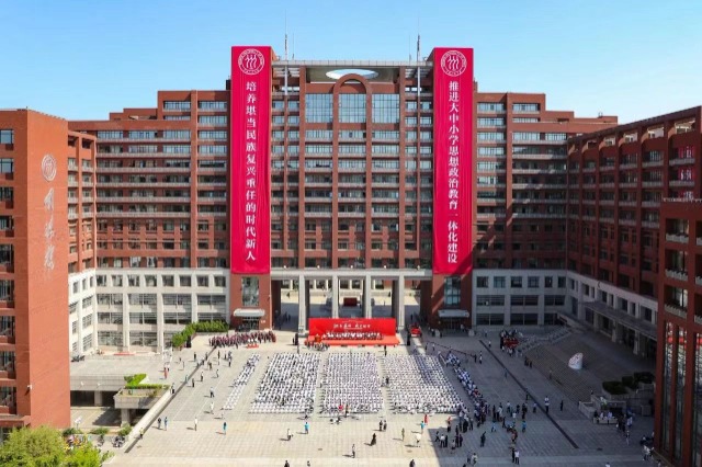 當(dāng)天,以“傳承紅色基因、浸潤(rùn)善美心靈”為主題的大中小學(xué)思想政治教育一體化建設(shè)美育成果展演在明德堂上演,以“七彩少年·紅色傳承·時(shí)代創(chuàng)新”為主題的AI賦能創(chuàng)意書(shū)畫(huà)展在明德廣場(chǎng)展出。