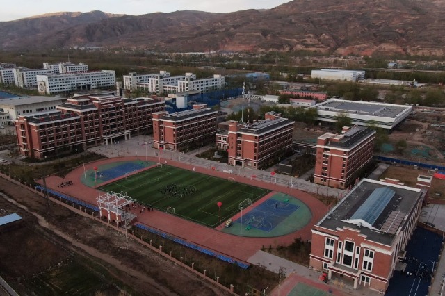 2021年4月28日拍攝的果洛西寧民族中學(xué)(無(wú)人機(jī)照片)。