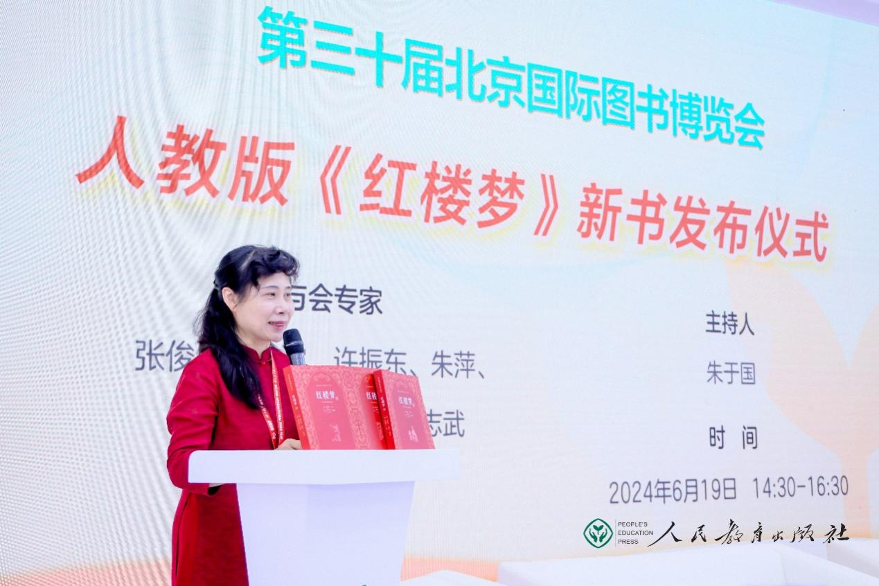 人民教育出版社總編輯王日春介紹了人教社“名著閱讀課程化叢書”的編寫初衷和人教版《紅樓夢》出版的基本情況。他表示,人教社在編研出版基礎(chǔ)教育教材的同時(shí),非常重視推動(dòng)全民閱讀,設(shè)計(jì)并推出的“名著閱讀課程化叢書”,通過系統(tǒng)化的課程設(shè)計(jì),幫助讀者尤其是中小學(xué)生更好地理解和欣賞名著的精髓,深受讀者歡迎。本次發(fā)布的人教版《紅樓夢》就是該套叢書的最新產(chǎn)品?!都t樓夢》是中國古代文學(xué)中的經(jīng)典巨著,具有深厚的思想文化內(nèi)涵、高超的藝術(shù)手法,是中華民族共同的文化記憶和寶貴的精神財(cái)富,是文化傳承與文化創(chuàng)新的寶貴資源。出版專為中小學(xué)生量身打造的人教版《紅樓夢》,對(duì)幫助中小學(xué)生傳承和理解中華優(yōu)秀傳統(tǒng)文化,培養(yǎng)文化自信能起到重要的推動(dòng)作用。
