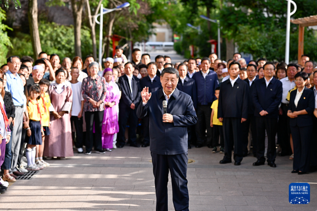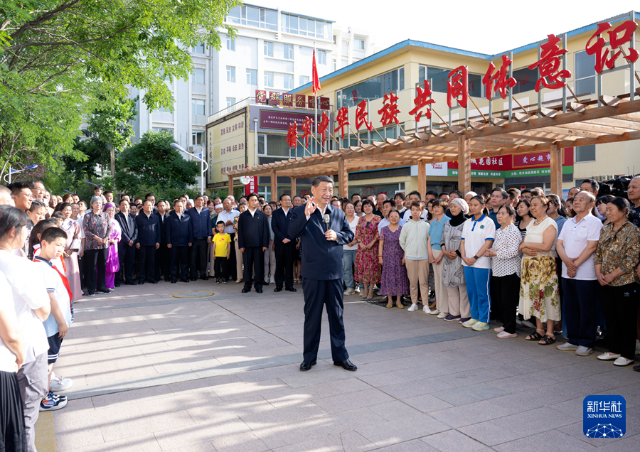 傍晚時分,社區(qū)廣場十分熱鬧,居民們看見總書記來了,紛紛圍攏過來,熱烈鼓掌歡迎。習近平親切地對大家說,時隔4年,我再次來寧夏看望各族干部群眾,見到大家非常高興!中華民族是一個大家庭,各族人民要像石榴籽一樣緊緊抱在一起。要不斷鑄牢中華民族共同體意識,把各族人民的心緊緊連在一起,把各方面的力量廣泛凝聚到一起,共同推進中國式現(xiàn)代化,共襄中華民族偉大復興的盛舉。