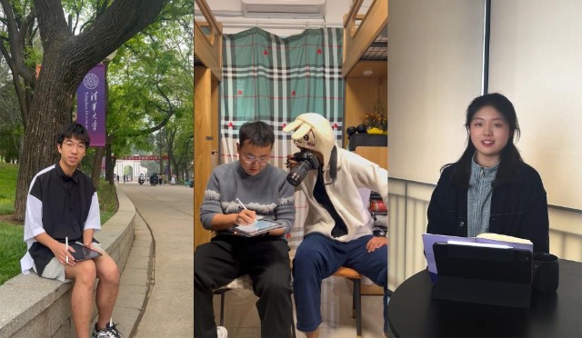 “清年閣”賬號(hào)部分主講人們,分別為金澤涵(左一)、胡思陽(yáng)(左二)、鄭媛元(右一)。新華社發(fā)