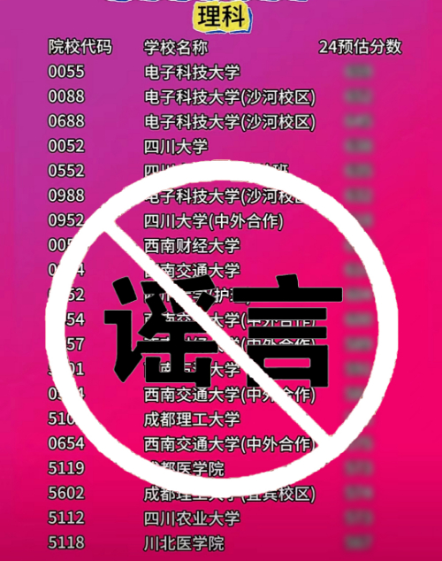 近日,一些社會機構(gòu)網(wǎng)絡(luò)賬號以文章或視頻形式發(fā)布所謂四川省2024年普通類本科一批調(diào)檔線,經(jīng)過四川省教育考試院核實,這些信息均為虛假信息,與實際情況不符。