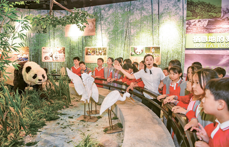 新時代以來,教育系統(tǒng)著力推動思想政治教育、專業(yè)教育與創(chuàng)新教育、社會實踐、志愿服務(wù)等的融合。圖為2024年5月17日,學生們在江西宜豐熊貓科技館開展“行走的思政課”主題科普教育活動,增強節(jié)約資源和保護自然環(huán)境意識。(人民圖片 周亮/攝)