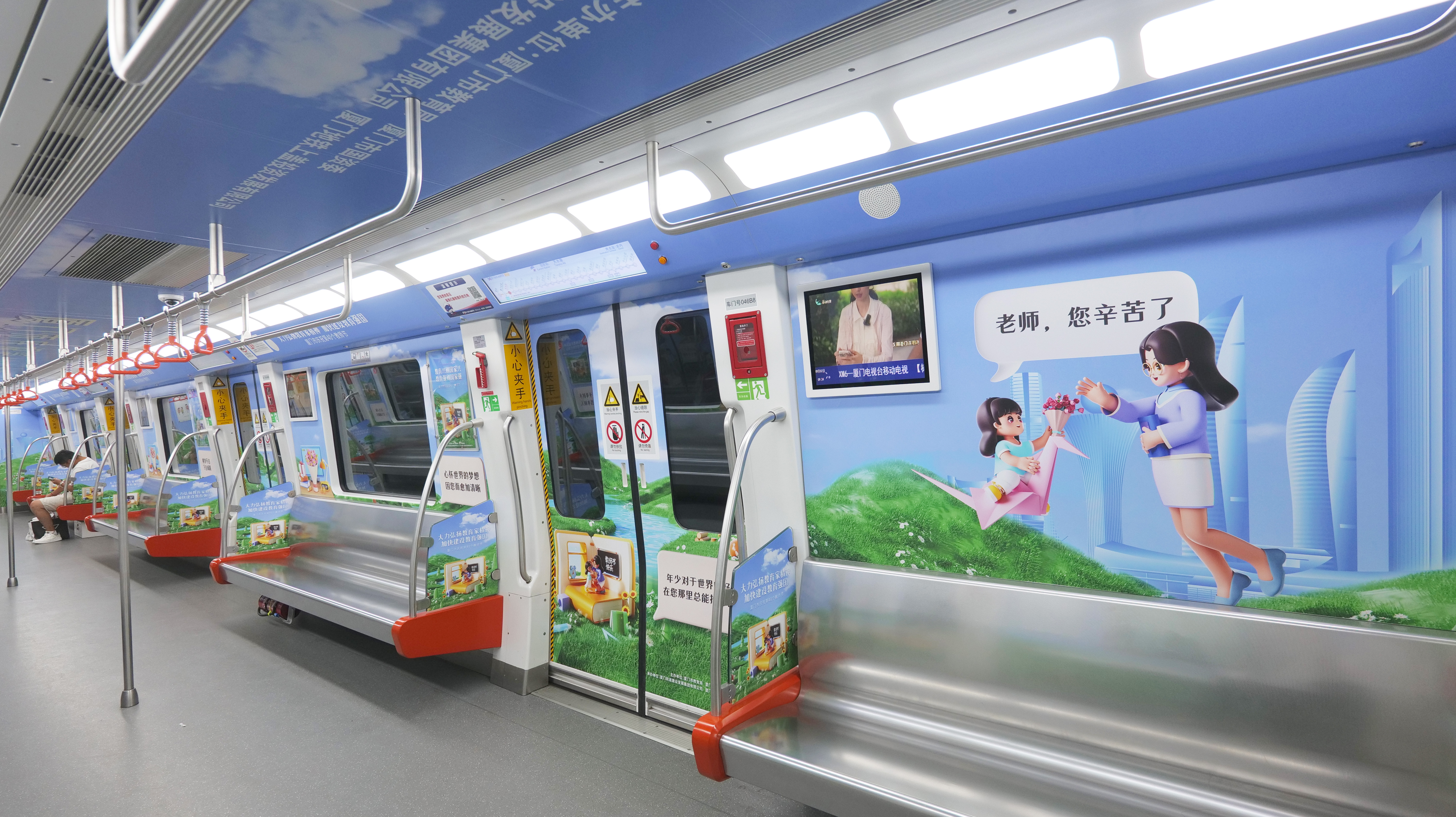地鐵車廂上的場景,將乘客帶回學生時代的熟悉瞬間,教師們的愛與關懷無處不在。廈門也借此次“教師節(jié)”地鐵專列,呼吁群眾向親愛的教師們送上美好的祝福,讓尊師重教的風尚入心見行。
