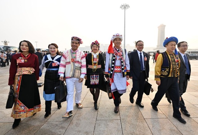 2023年3月5日,第十四屆全國人民代表大會(huì)第一次會(huì)議在北京人民大會(huì)堂開幕。這是全國人大代表走向會(huì)場(chǎng)。新華社記者陳益宸攝