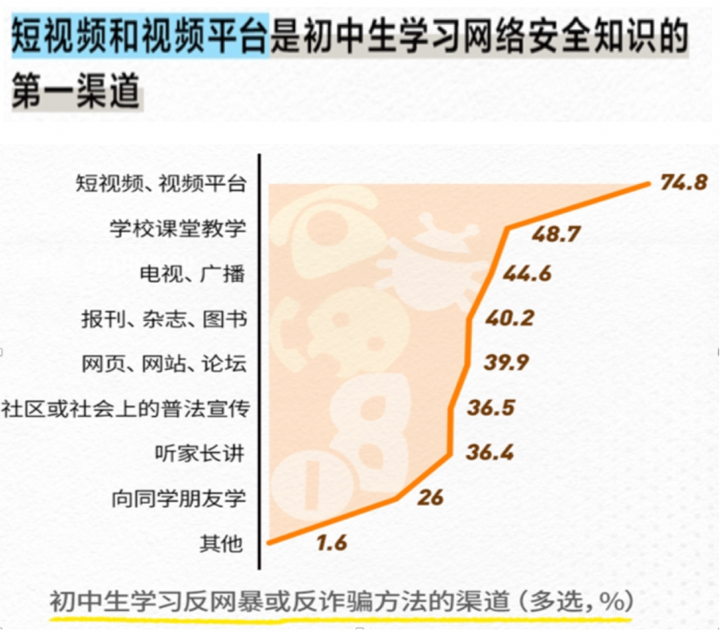 視頻、短視頻是初中生學(xué)習(xí)網(wǎng)絡(luò)安全知識(shí)的第一渠道