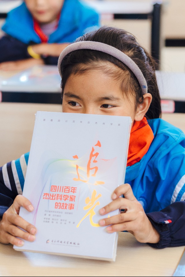 9月27日,四川師范大學攜手中國科學院光電技術研究所科學家精神教育基地,在四川省甘孜州九龍縣中學、甘孜城關小學及嘎爾鎮(zhèn)寄宿制小學成功舉辦“一對一”精準幫扶“科學家精神進校園”活動,為學生贈書。四川師范大學供圖