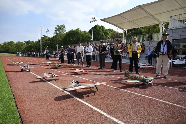 寶山區(qū)第三老年大學(xué)航空模型高級研修班的學(xué)員們在學(xué)習(xí)遙控滑翔機(jī) 劉曉晶 攝