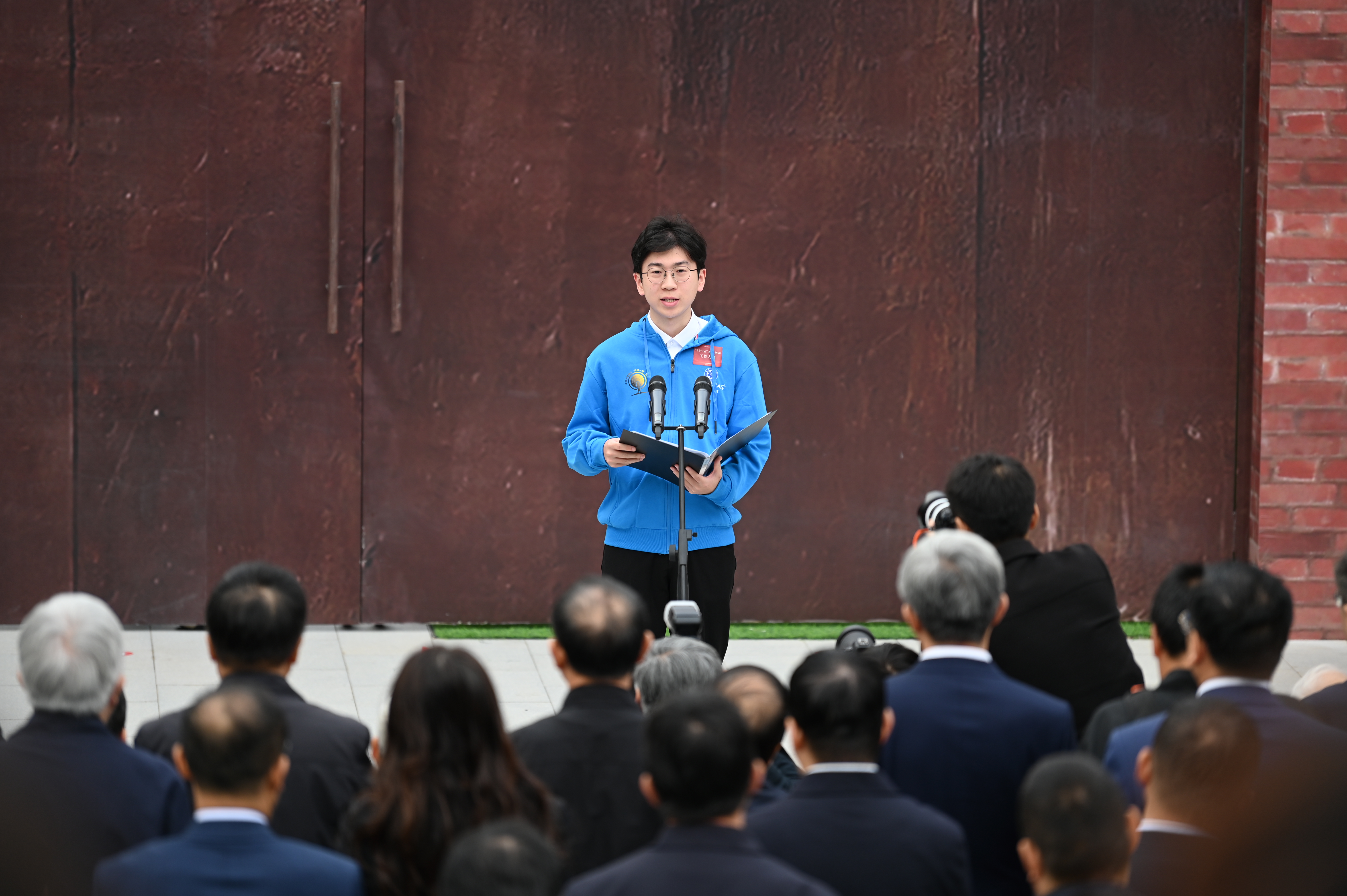 中國科學(xué)院大學(xué)學(xué)生代表潘憶遙分享了自己擔(dān)任紀(jì)念館學(xué)生講解員的經(jīng)歷和體會,表示要從“兩彈一星”精神和先輩們的事跡中不斷汲取前進的力量,勇?lián)姑⑸朴谧鳛?,敢于挑?zhàn)未知,為科技強國建設(shè)添磚加瓦。