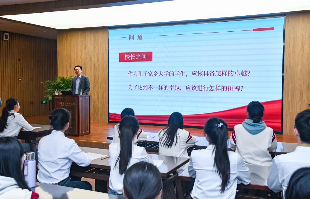 “張校長現(xiàn)場為我們展示張桂梅老師的那枚黨員徽章讓人印象深刻?!贝髮W(xué)生師德宣講團成員張瀚予同學(xué)在課后談到,作為一名師范生,必須愛黨愛國,堅定“四個自信”,并應(yīng)在未來站上講臺時把這種信念傳遞下去。馬克思主義學(xué)院2024級思想政治教育專業(yè)公費師范生辛金澤說,“校長之問”寄寓著對我們成長成才的深深期許,作為孔子家鄉(xiāng)大學(xué)的師范生,不僅應(yīng)具備高尚的品德修養(yǎng),提升從教的核心素養(yǎng),更要樹立遠(yuǎn)大志向,追求卓越,以弘揚教育家精神的實際行動為建設(shè)教育強國貢獻一份力量。