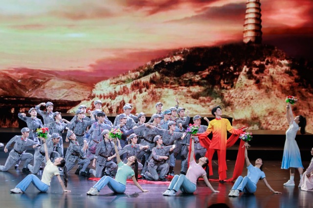 九十分鐘的演出,演員們用精湛的舞蹈表演和富有感染力的音樂,生動再現(xiàn)了那段波瀾壯闊的崢嶸歲月。舞臺下,觀眾仿佛置身其中,跟隨劇情感受著延安精神跨越時空、歷久彌新,激勵著一代又一代共產(chǎn)黨人奮勇前行,為全面建設社會主義現(xiàn)代化強國、實現(xiàn)中華民族偉大復興的中國夢提供強大精神動力。