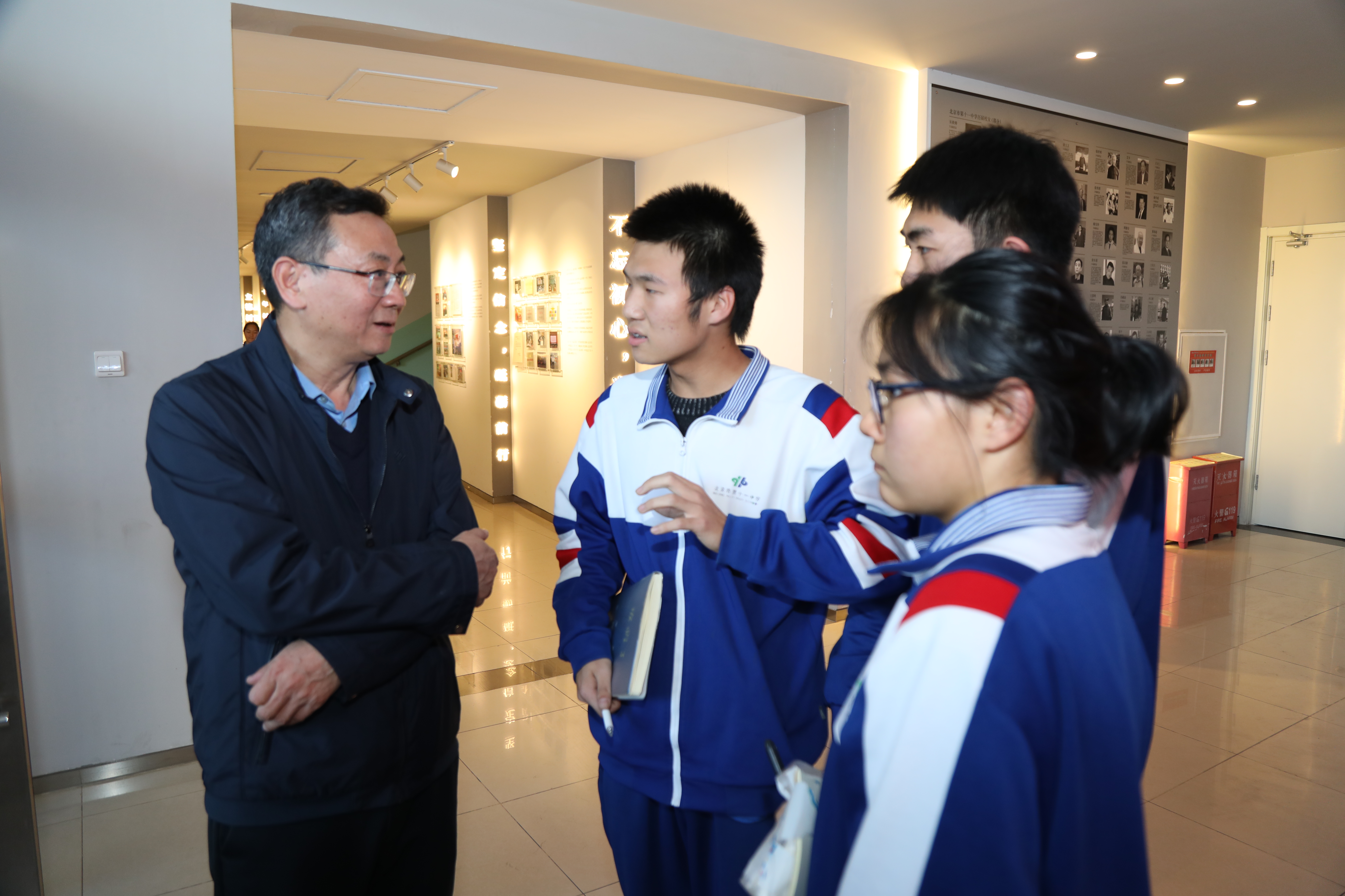 學生和中國科學院院士、古鳥類學家周忠和交流科學問題。(學校供圖)