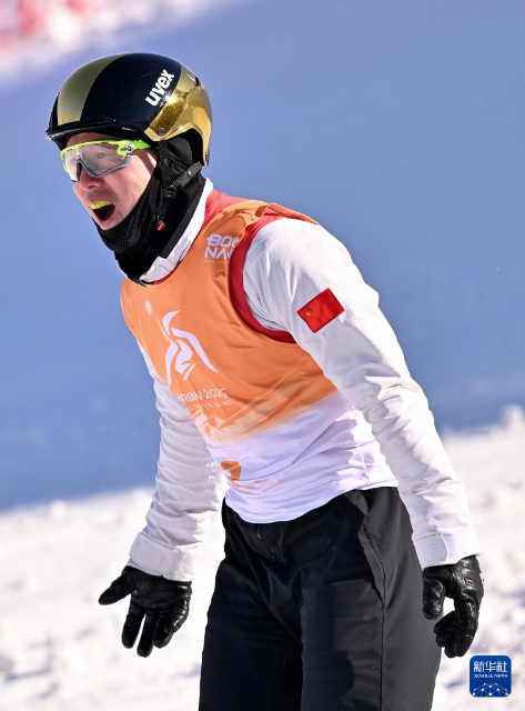 2月10日,中國隊選手李心鵬完成比賽后慶祝。