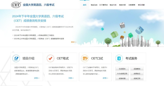 2024年下半年全國(guó)大學(xué)英語(yǔ)四、六級(jí)考試(CET)成績(jī)查詢服務(wù)將于2025年2月26日開(kāi)通,有關(guān)安排如下: