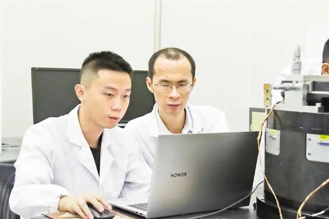 圖為劉小康(右)在指導(dǎo)學(xué)生做實驗。(重慶理工大學(xué)供圖)