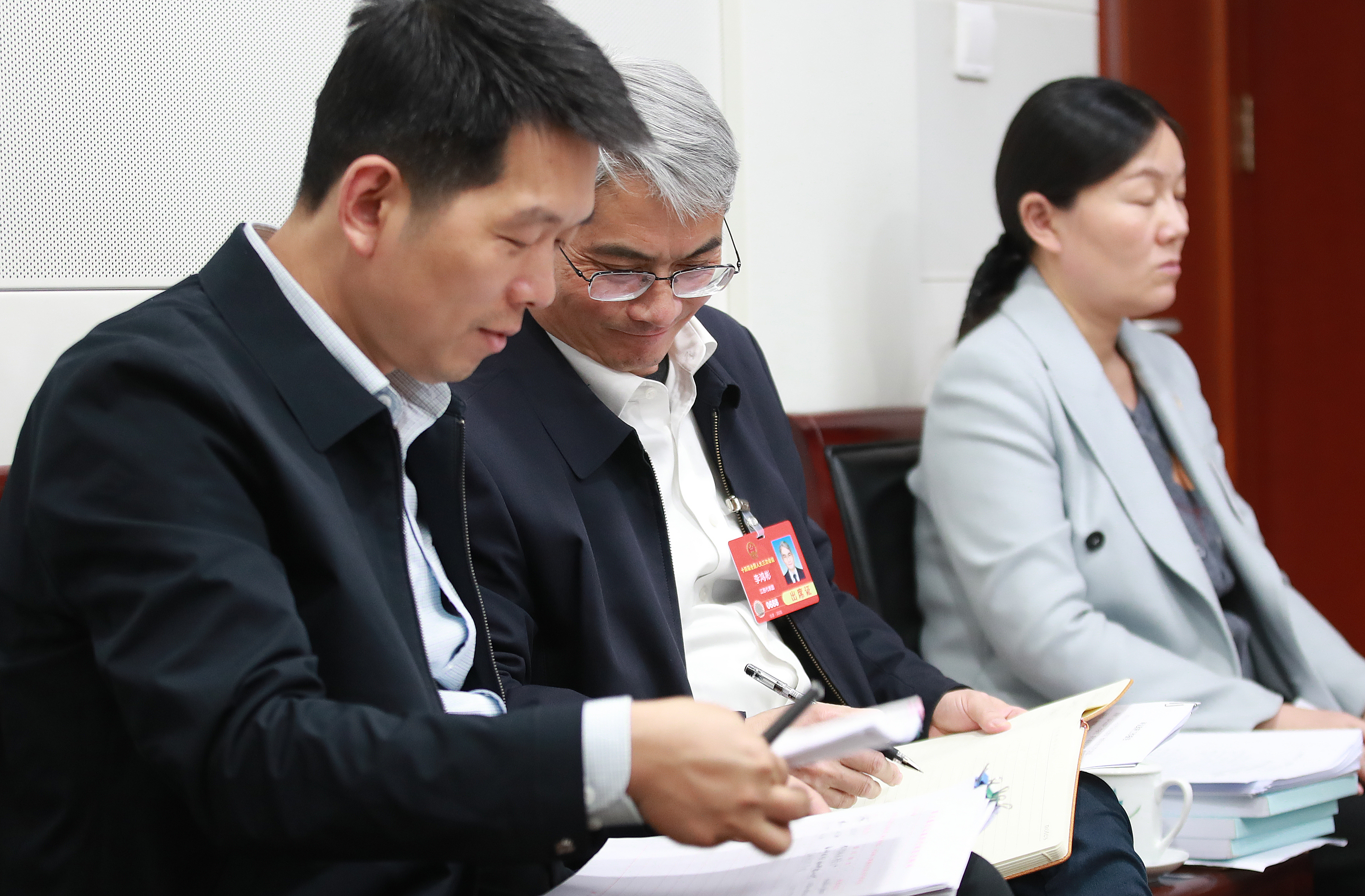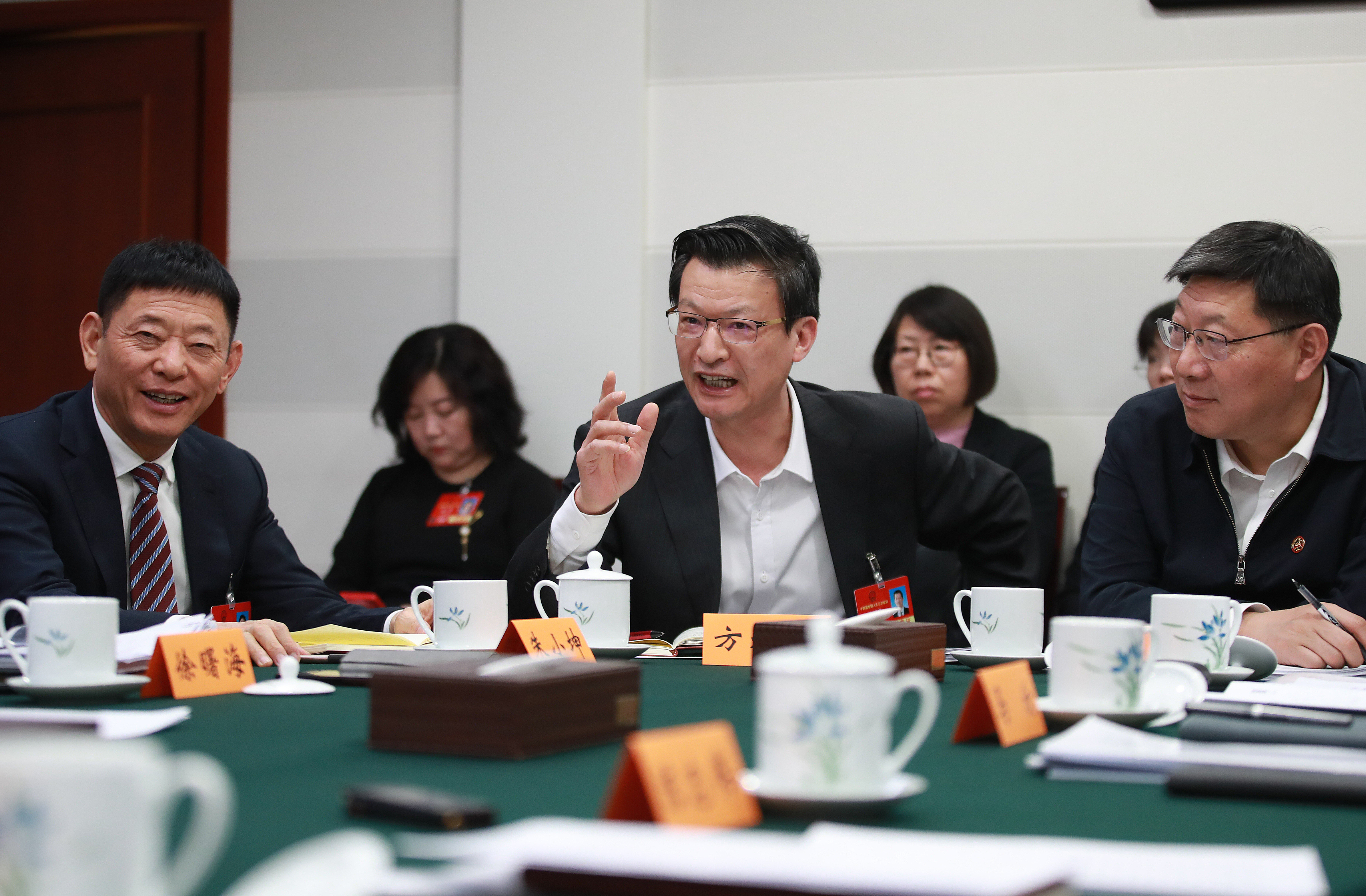 3月6日,十四屆全國人大三次會議小組會議,江蘇省代表團第六組在學習討論。 本報記者 張學軍 攝