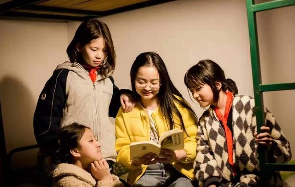 麻小娟在女生寢室講故事。學(xué)校供圖