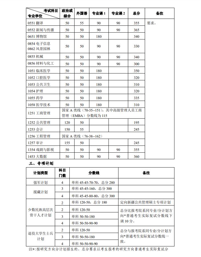 不低于國家基本分數(shù)線中“報考‘少數(shù)民族高層次骨干人才計劃’考生”相應學科專業(yè)的總分要求。