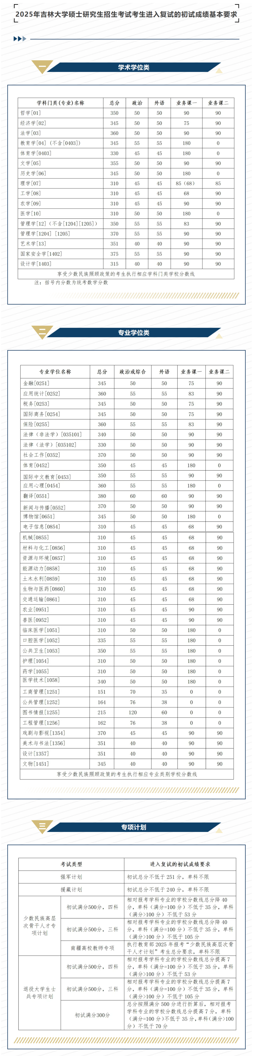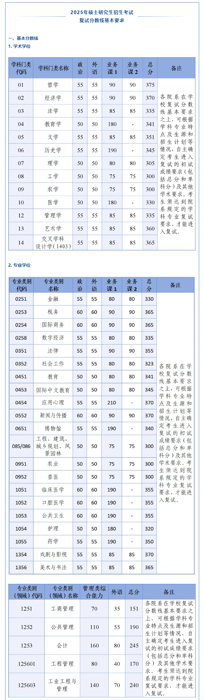 根據(jù)教育部有關(guān)文件精神,結(jié)合報考情況,同濟大學招生領(lǐng)導小組經(jīng)會議研究決定,同濟大學2025年全國碩士研究生招生考試進入復試的初試成績基本要求如下: