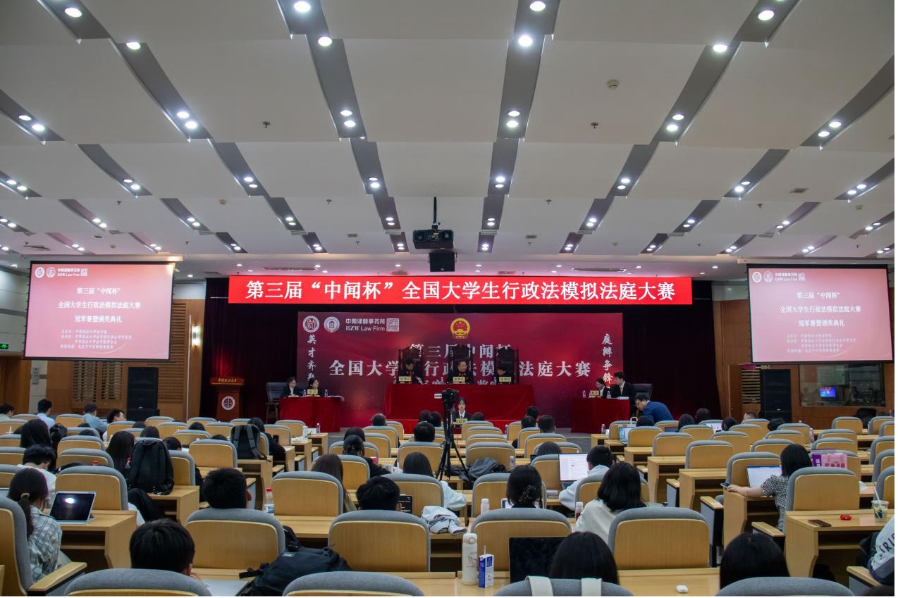 第三屆“中聞杯”全國(guó)大學(xué)生行政法模擬法庭大賽冠軍賽現(xiàn)場(chǎng)。學(xué)校供圖