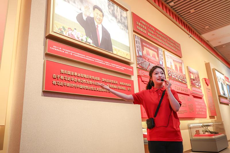 中國教育報(bào)-中國教育新聞網(wǎng)訊(記者 焦以璇)“大家現(xiàn)在所在的一層中央大廳共展出各型飛機(jī)23架,其中地面陳列16架,空中懸掛7架?!薄按蠹铱?!這是邊防官兵執(zhí)行任務(wù)中使用的黨旗、官兵寫在羊皮褥子上的請(qǐng)戰(zhàn)書”……近日,在中國人民革命軍事博物館里,北京聯(lián)合大學(xué)的學(xué)生講解員用貼近青年思維的語言為本校2024級(jí)參訓(xùn)學(xué)生講述著強(qiáng)軍故事。