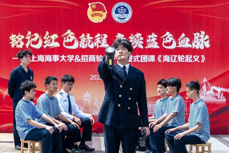 日前,上海海事大學(xué)與招商局能源運(yùn)輸股份有限公司合作,將校友方枕流和海遼輪的故事以沉浸式課堂的形式融入學(xué)生日常生活,將舞臺(tái)搬到校內(nèi)廣場(chǎng),師生親身參與到歷史學(xué)習(xí)、劇本創(chuàng)作、角色打磨、現(xiàn)場(chǎng)演出等環(huán)節(jié),感悟先輩精神,砥礪報(bào)國(guó)之志。
