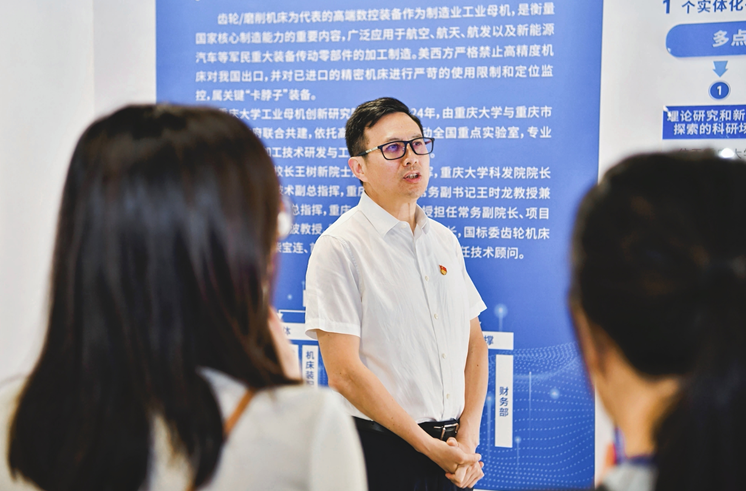 重慶大學(xué)教授王時(shí)龍向媒體團(tuán)介紹研究院基本情況。