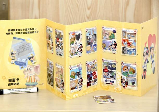 在設(shè)計(jì)上,《對(duì)校園欺凌說(shuō)“不”》配套卡牌充分發(fā)揮卡游的原創(chuàng)美術(shù)設(shè)計(jì)優(yōu)勢(shì),以溫暖明快的色彩、擬人化小動(dòng)物形象構(gòu)建親和化視覺(jué)體系,并創(chuàng)新性采用“莫爾條紋解密卡”,讓青少年在拆解謎題的過(guò)程中,潛移默化掌握欺凌識(shí)別技巧、溝通干預(yù)方法及自我保護(hù)技能。這種“靜態(tài)閱讀+動(dòng)態(tài)互動(dòng)”的組合模式,打破了傳統(tǒng)說(shuō)教式教育的壁壘,為校園法治教育注入創(chuàng)新活力。