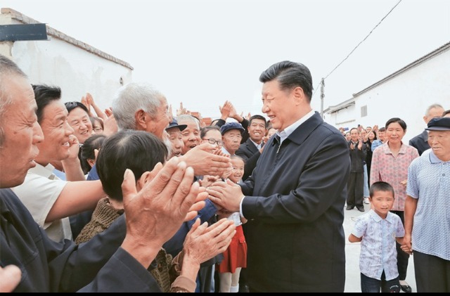 2019年8月19日至22日,中共中央總書記、國(guó)家主席、中央軍委主席習(xí)近平在甘肅考察。這是21日上午,習(xí)近平在武威市古浪縣黃花灘生態(tài)移民區(qū)富民新村同村民親切交談。 新華社記者 鞠鵬/攝