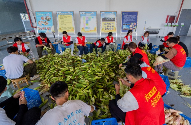 暑期實(shí)踐以團(tuán)建活動(dòng)拉開序幕,學(xué)生們通過團(tuán)隊(duì)凝聚力建設(shè)迅速拉近距離,為后續(xù)實(shí)踐打下堅(jiān)實(shí)基礎(chǔ)。在農(nóng)耕初體驗(yàn)環(huán)節(jié),學(xué)生們走進(jìn)茅山鎮(zhèn)蔡門村鮮食玉米產(chǎn)業(yè)基地,參與玉米采摘、切頭去尾、加工包裝等農(nóng)事競(jìng)賽,在高溫酷暑天深入玉米基地體驗(yàn)農(nóng)業(yè)生產(chǎn)的不易,同時(shí)以農(nóng)事知識(shí)競(jìng)賽形式體驗(yàn)農(nóng)耕文化,感受收獲的樂趣。