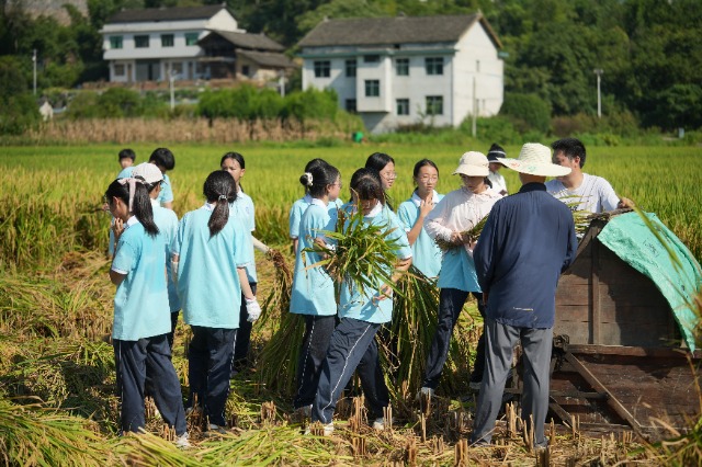 8月24日,湖南省安化縣梅城鎮(zhèn)中學(xué)把教室搬進(jìn)田野,讓學(xué)生親手觸摸泥土、執(zhí)起鐮刀,在躬身勞作中體會(huì)“一粥一飯,當(dāng)思來之不易”的厚重。393班的姚同學(xué)擦拭著額角的汗水說:“今天我才真正懂了‘誰知盤中餐,粒粒皆辛苦’的含義!”(中國教育報(bào)-中國教育新聞網(wǎng) 通訊員 蔣志球 姚金旺)