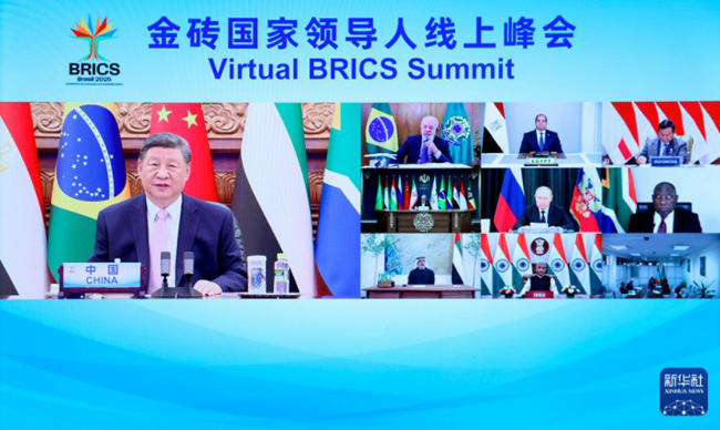 9月8日晚,國家主席習近平出席金磚國家領導人線上峰會,并發(fā)表題為《團結合作砥礪前行》的重要講話。新華社記者黃敬文攝