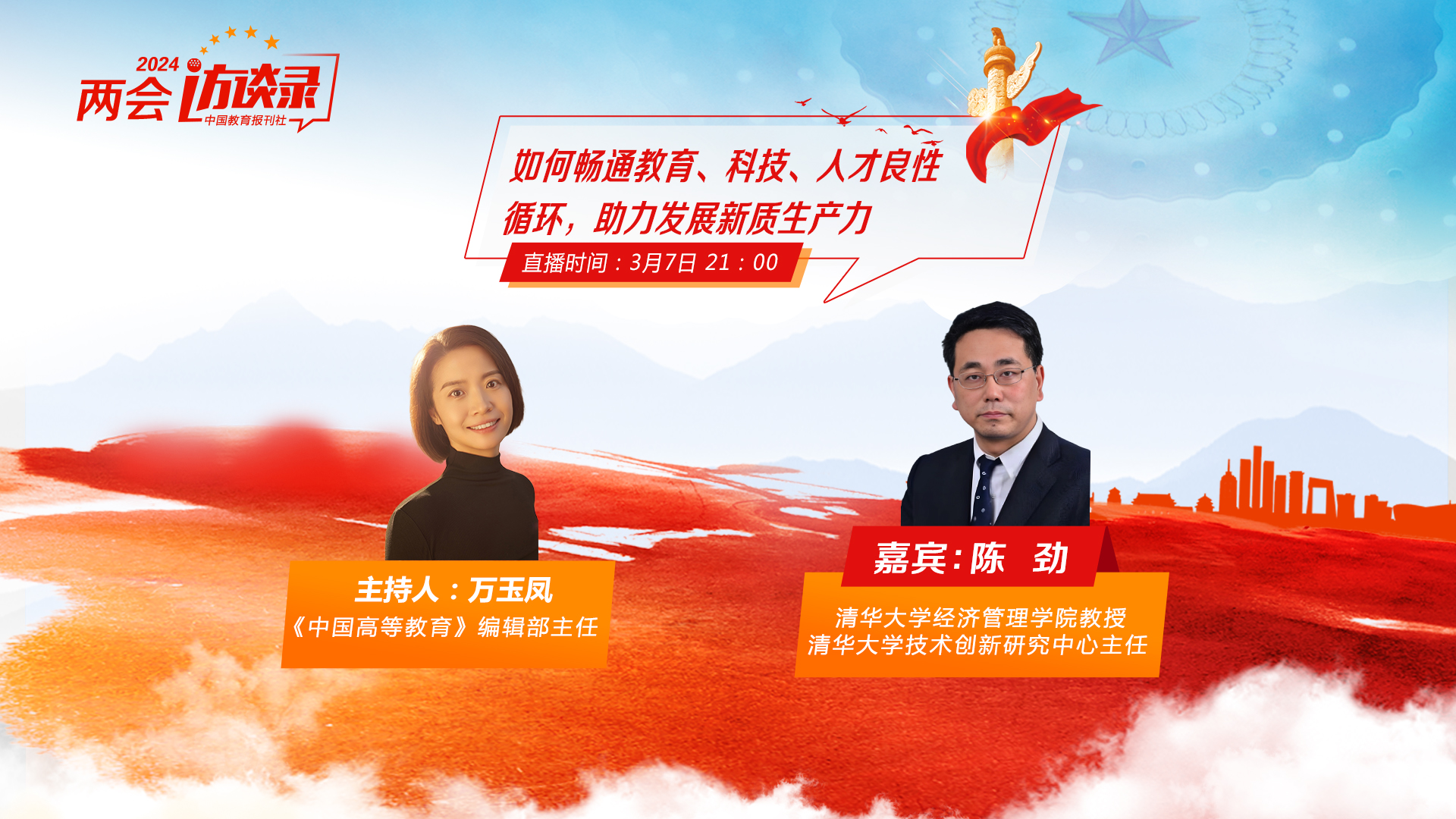 今年的政府工作報告提出,要加快發(fā)展新質(zhì)生產(chǎn)力,深化教育科技人才綜合改革,為現(xiàn)代化建設(shè)提供強大動力。高校怎樣找準(zhǔn)深化教育科技人才綜合改革的著力點,全面提升自主創(chuàng)新能力,推動新質(zhì)生產(chǎn)力加快發(fā)展?本次訪談以“如何暢通教育、科技、人才良性循環(huán),助力發(fā)展新質(zhì)生產(chǎn)力”為題,特邀清華大學(xué)經(jīng)管學(xué)院教授、清華大學(xué)技術(shù)創(chuàng)新研究中心主任陳勁與我們共同探討。