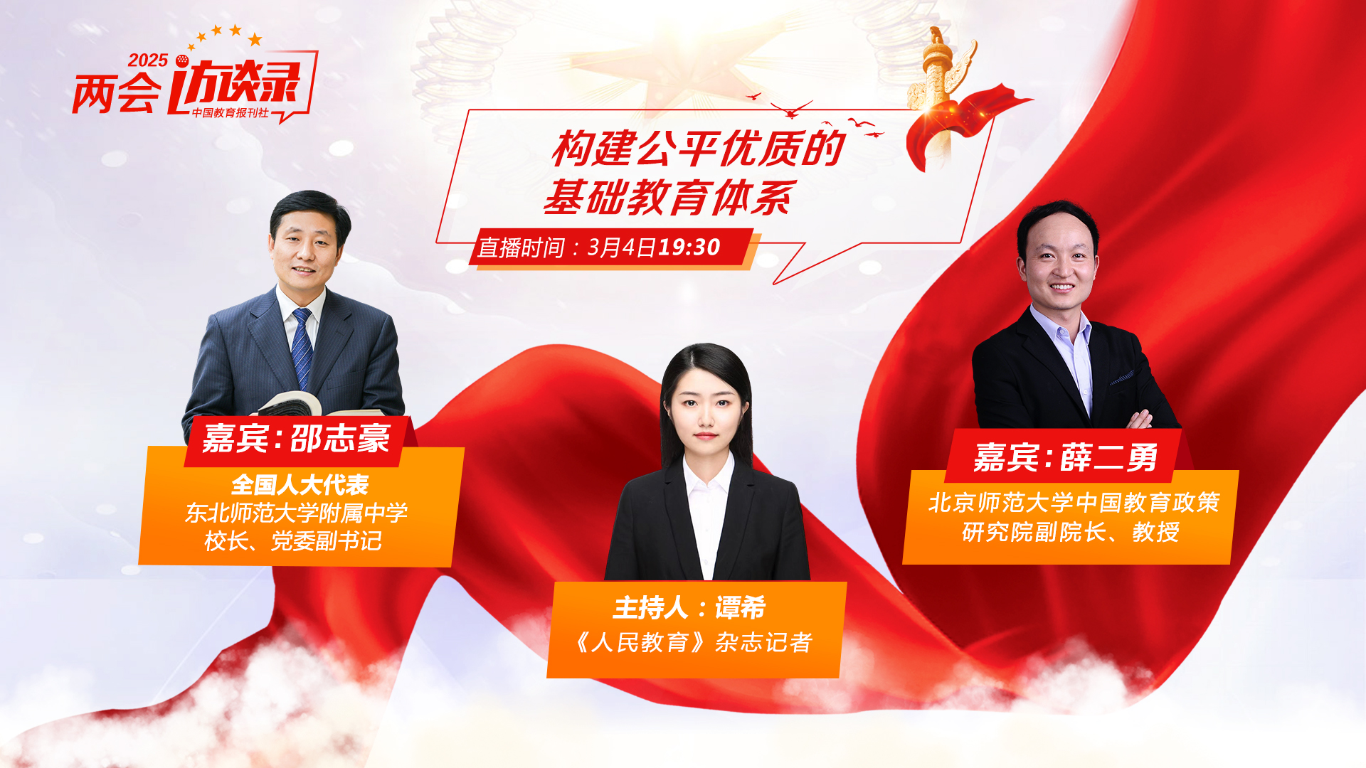簡介:《教育強(qiáng)國建設(shè)規(guī)劃綱要(2024-2035年)》提出,辦強(qiáng)辦優(yōu)基礎(chǔ)教育,夯實全面提升國民素質(zhì)戰(zhàn)略基點(diǎn)。本次訪談邀請到全國人大代表、東北師范大學(xué)附屬中學(xué)校長、黨委副書記邵志豪和北京師范大學(xué)中國教育政策研究院副院長、教授薛二勇,與我們一同探討如何構(gòu)建公平優(yōu)質(zhì)的基礎(chǔ)教育體系。