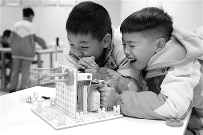 圖為湖南省湘西土家族苗族自治州溶江小學(xué)人工智能機(jī)器人社團(tuán)的學(xué)生們?cè)隗w驗(yàn)學(xué)習(xí)?!半p減”政策實(shí)施以來,溶江小學(xué)開設(shè)多種科技社團(tuán),在落實(shí)“雙減”工作的同時(shí),放飛學(xué)生們的科技?jí)粝?。彭?nbsp;攝