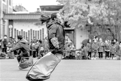 近日,貴州省黔西市第一小學(xué)學(xué)生在進行袋鼠跳游戲項目比賽。該校舉行冬季運動會,讓學(xué)生在豐富多彩趣味游戲活動中提高運動技能、學(xué)會團結(jié)合作,在運動中感受童趣與歡樂。范暉 攝